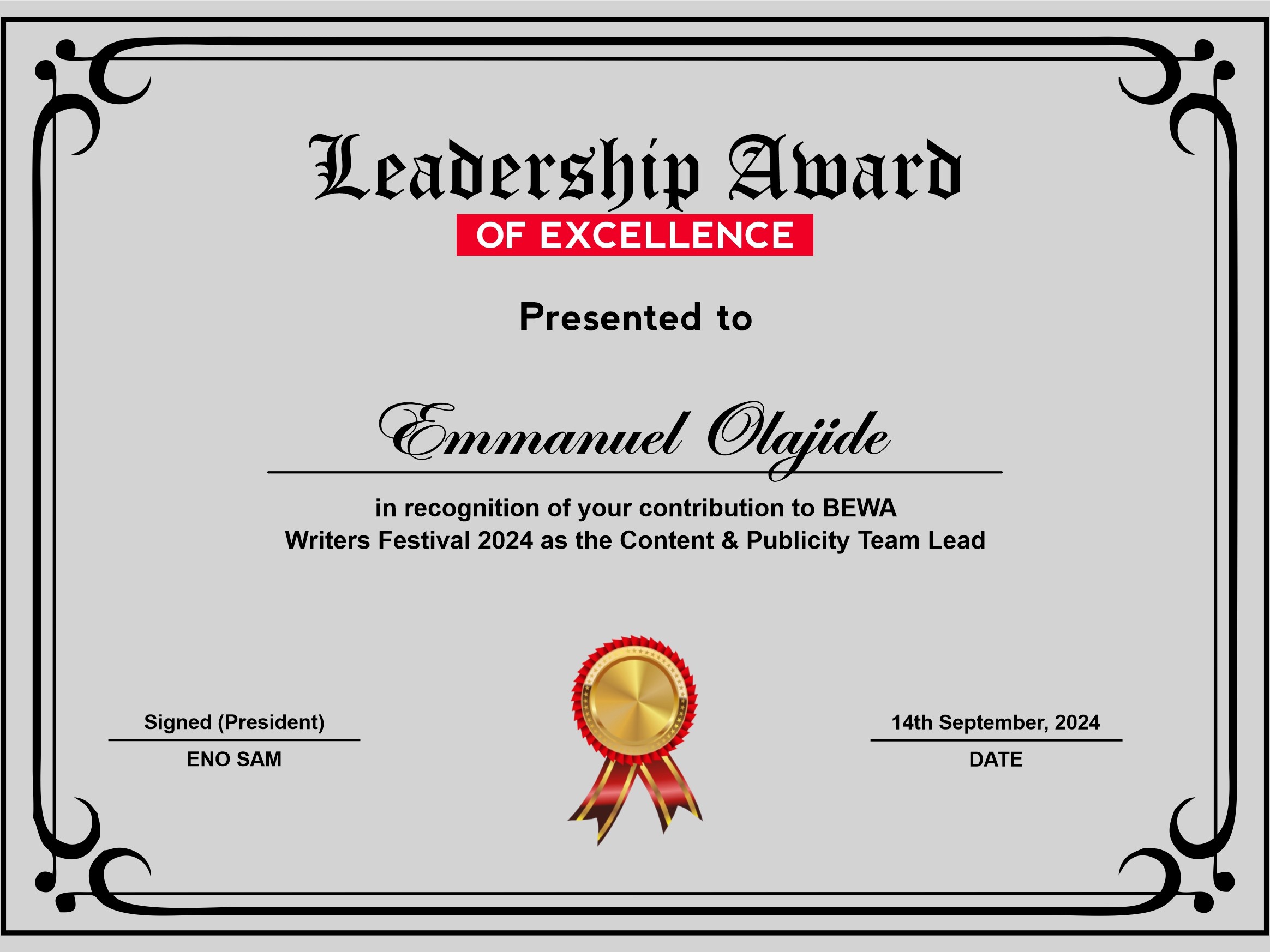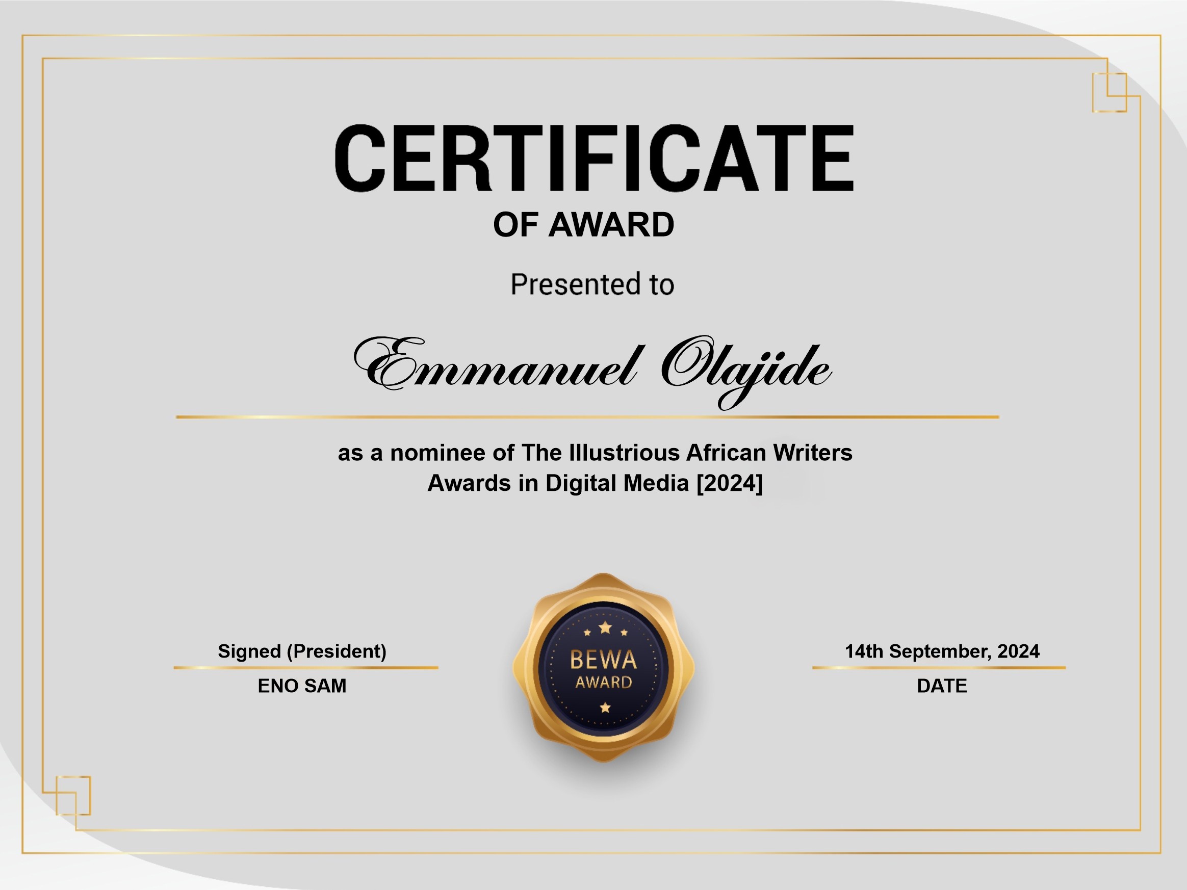 Illustrious African Writers Award by Brilliant Entrepreneurs and Writers Academy (BEWA)