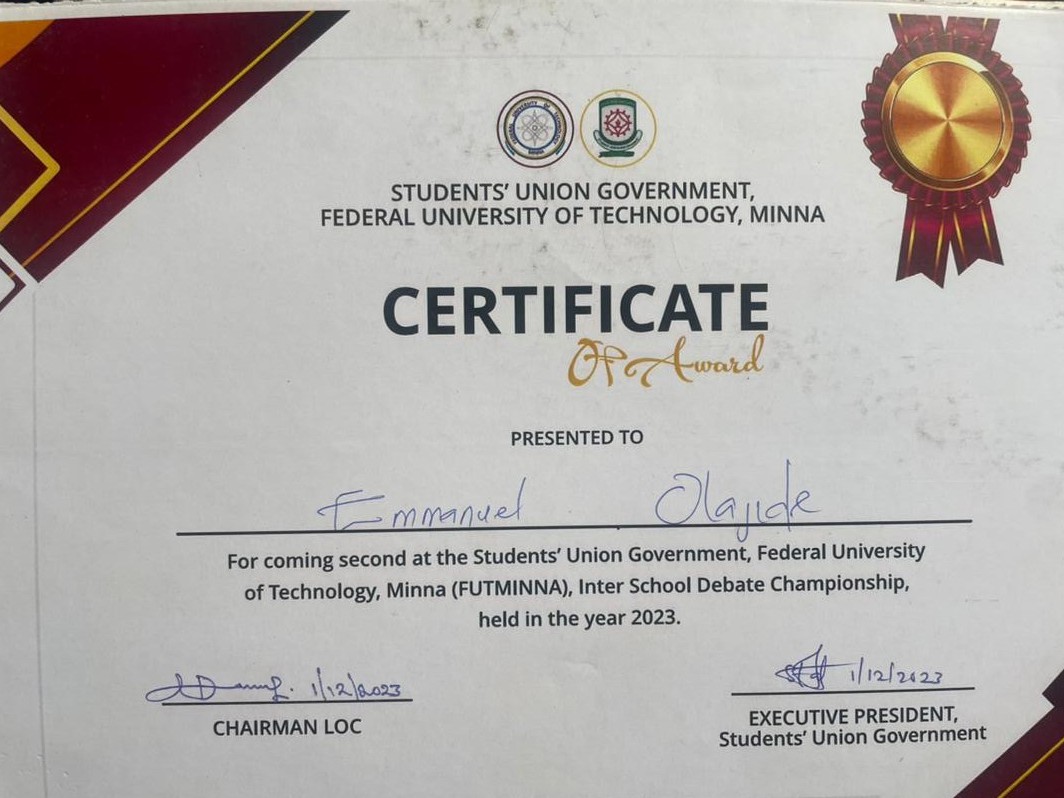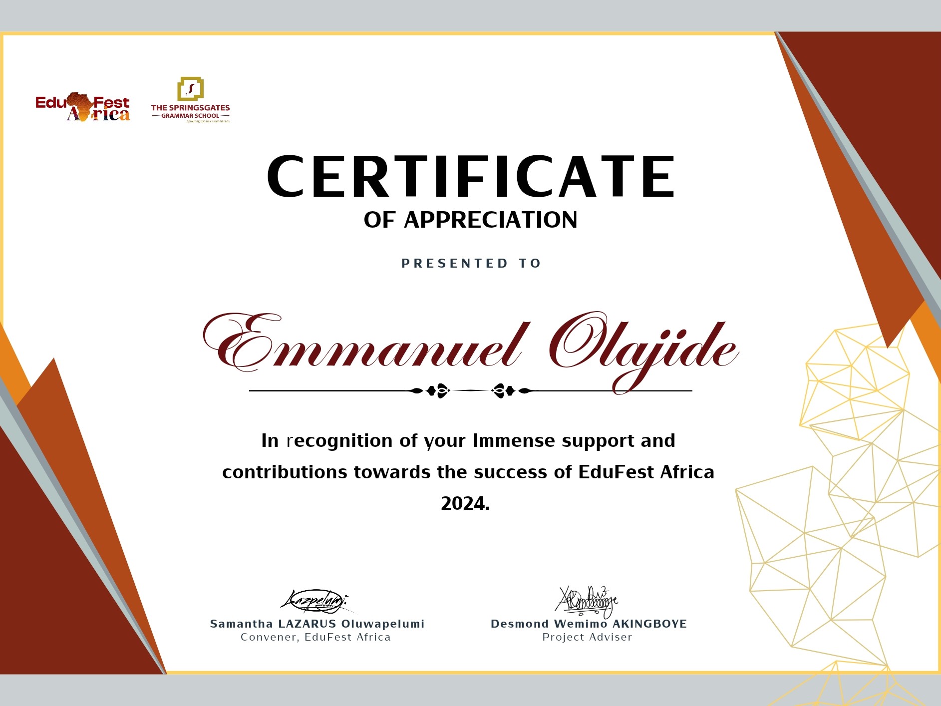 Founded Recalibration Community on March 2, 2024, after graduating as one of the top three in my department. Launched with an educational event titled “Recalibration: Maximizing Your Undergraduate Years for All-Round Excellence”, with 88 participants from 5 Nigerian states and 5 invited speakers.
